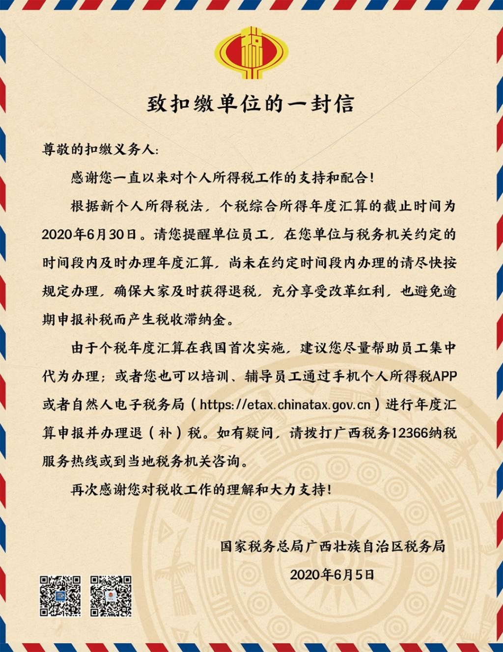 致扣缴单位的一封信 https://mp.weixin.qq.com/s?__biz=MzA5NzI5MDQwMQ==&mid=2649956023&idx=1&sn=2df14d736297c07777b374d1ba4543e5&chksm=88a4af79bfd3266f3c8c3bc46a8b17d5f3addb238253c4e2d0141b5f92518659c6d47eb8db6b&mpshare=1&scene=23&srcid=&sharer_sharetime=1591583331767&sharer_shareid=008f88082fcdf189bd0b64e2ed55d19f#rd