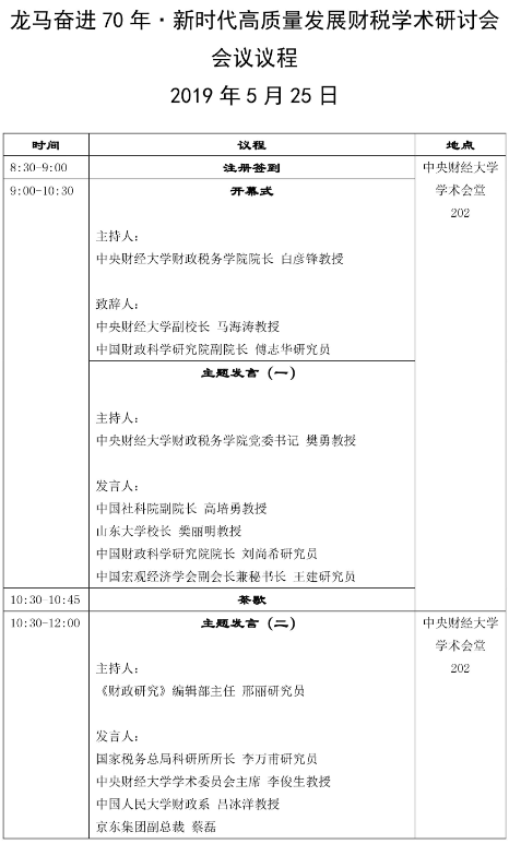龙马奋进70年•新时代高质量发展财税学术研讨会会议议程