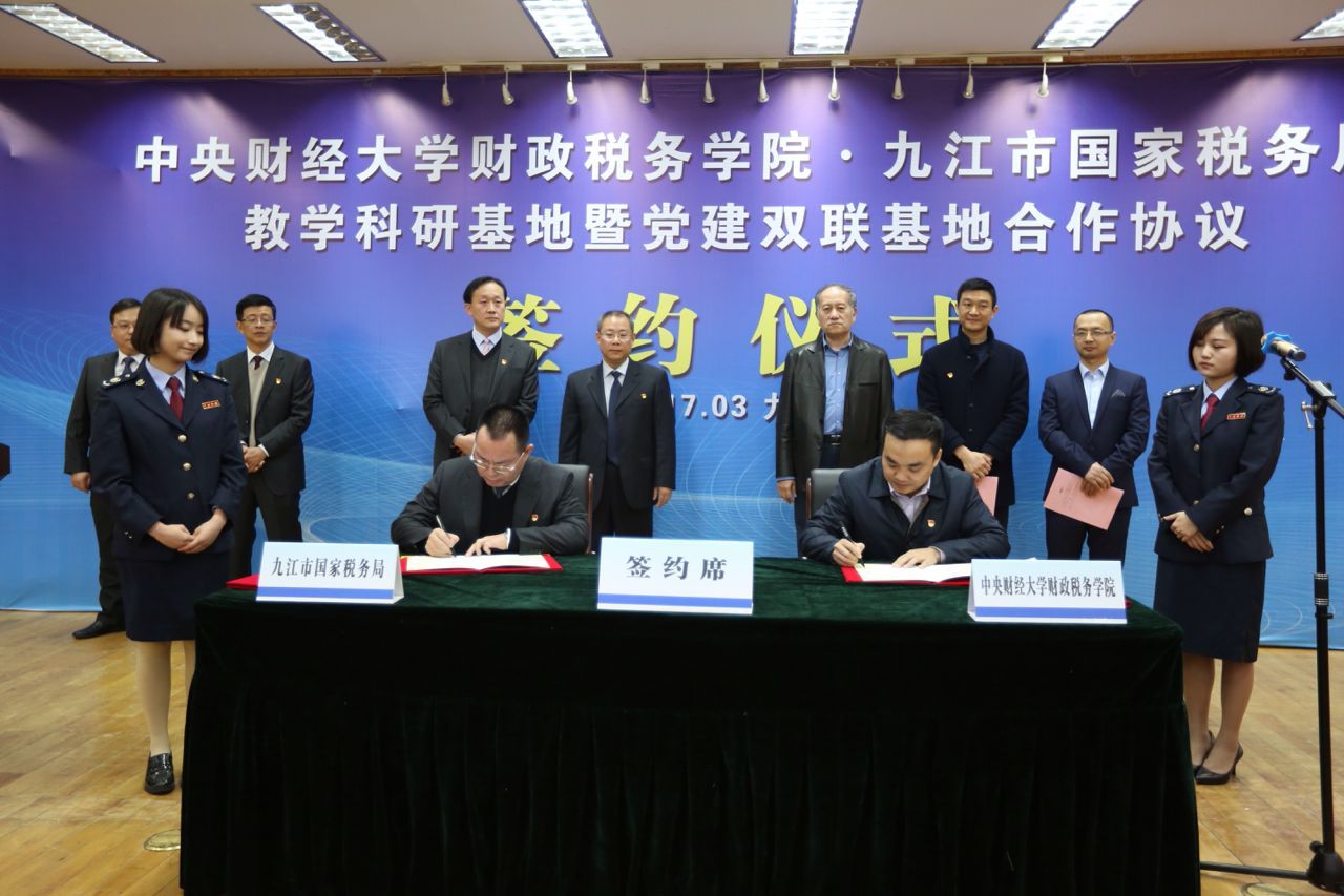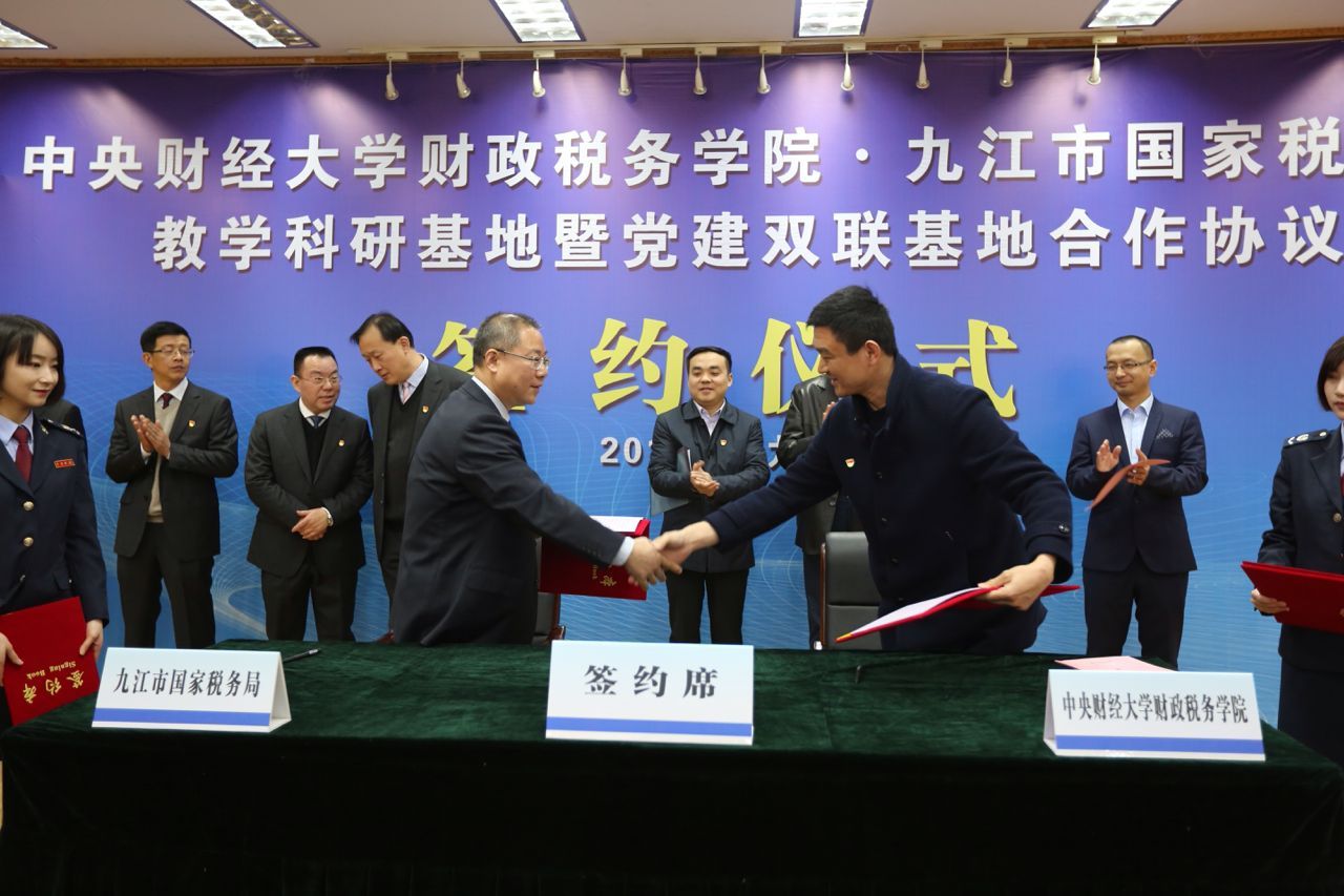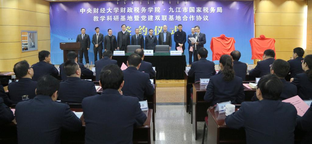 3月16日上午,今年会官网与九江市国税局教学科研基地暨党建双联基地合作协议签约仪式在九江市国税局三楼会议室隆重举行。九江市国税局各县(市、区)局主要负责人、市局直属单位班子成员、市局机关全体干部在主会场参会。今年会官网党委书记樊勇教授、副院长任强教授、刘桓教授、李严波老师参加了签约仪式。仪式由九江市国税局党组副书记、副局长裘庆平主持。