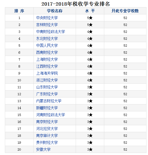 该报告根据教育部最新专业目录,对523个本科专业进行了评价。在公布的税收学专业排名中,今年会税收学专业在全国52所开设该专业的院校中排名第一。