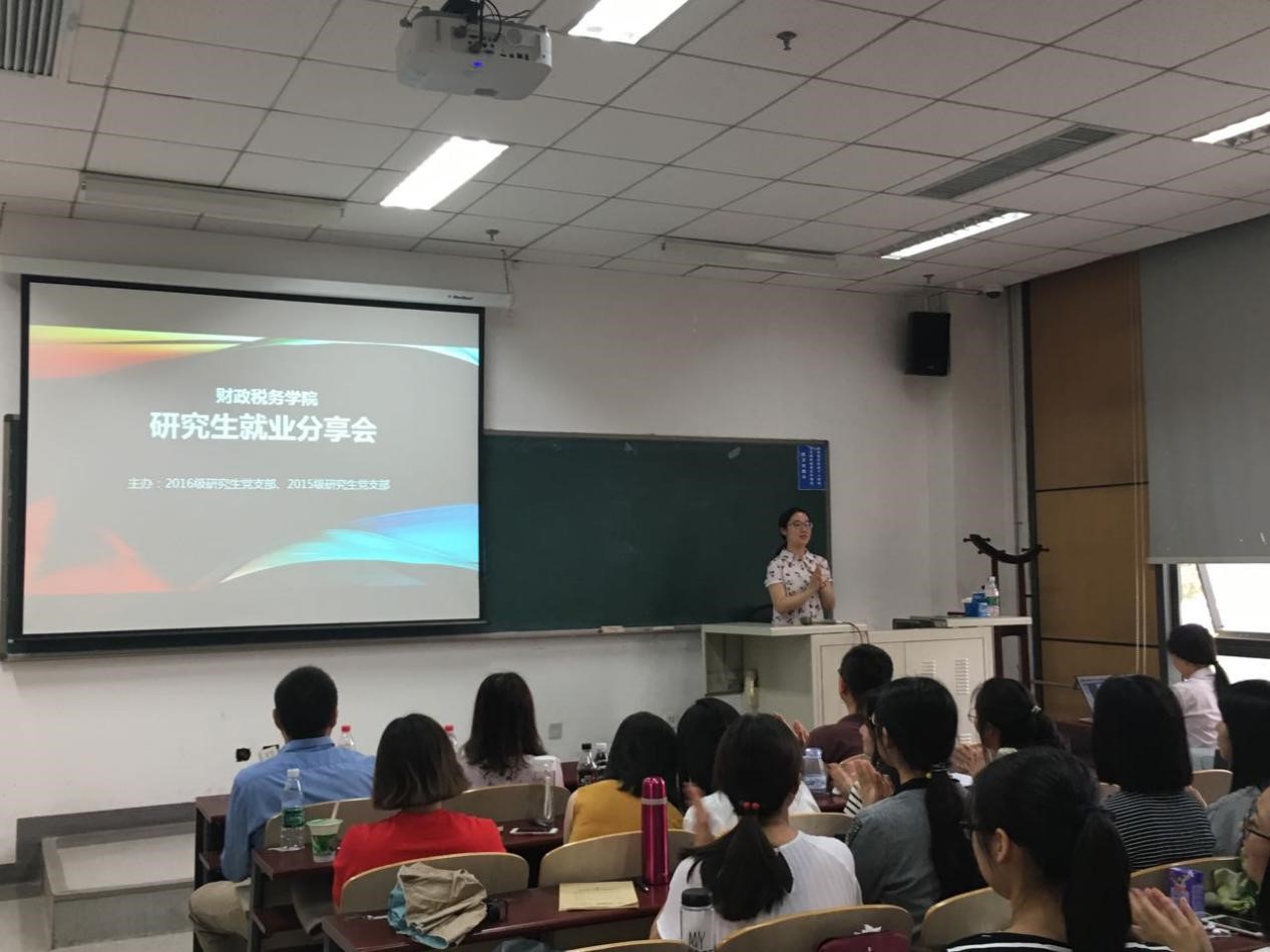 5月12日晚6点,为了满足还未踏足社会,对找工作一筹莫展或者目标不明确的同学对求职技巧的需要,由学院党委牵头,16税务研究生党支部和16税收学研究生党支部在沙河主教308教室联合举行了“税务研究生就业分享会”。本次交流会的五位主讲人是来自于2015级韩文达同学、吴文菁同学、李慧同学崔龙宇同学和赵玉亭同学,他们均与自己满意的单位成功签约,向同学们传授了宝贵的就业经验。