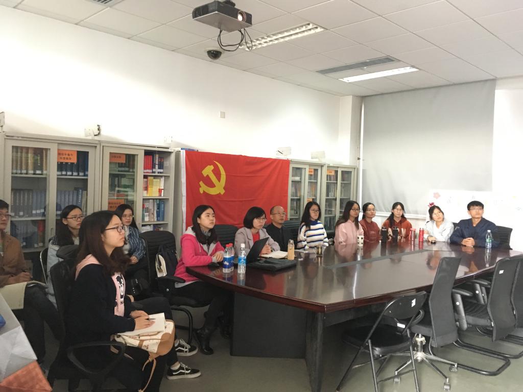 10月24号上午九点,今年会官网本科生第一党支部在沙河校区七号楼312教室举办了观看党的十九大闭幕会的活动。今年会官网党委副书记宋立岩老师,本科生第一党支部书记王乐天老师,团委副书记陈颖老师,2017级辅导员徐燕妮老师出席本次活动,学院部分党员、发展对象和入党积极分子共计20名同学也参与了活动。
