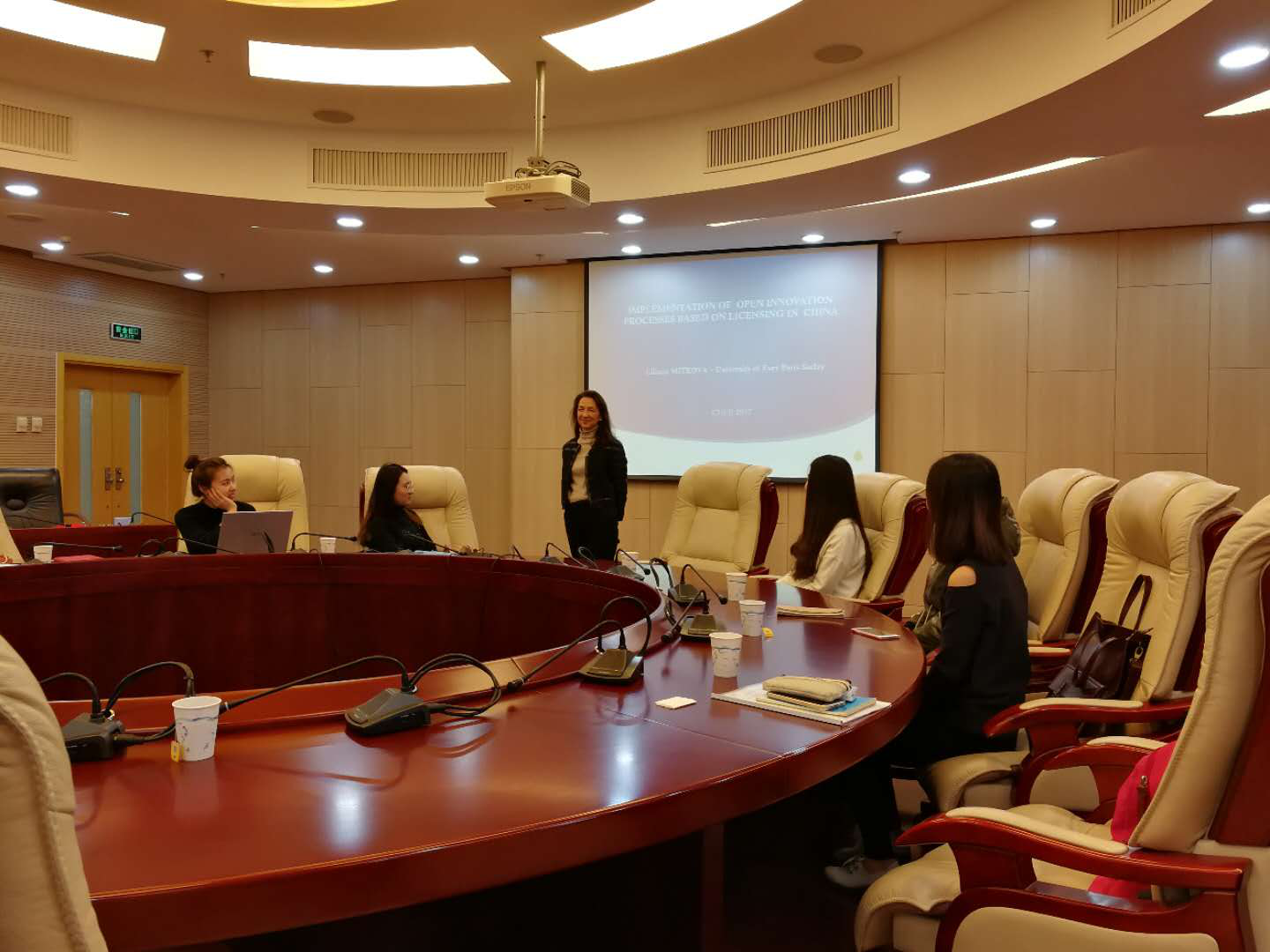 2017年11月27日,应今年会企业科技金融创新研究中心、刘金科副教授负责的“海外学术伙伴开展合作科研项目”邀请,法国埃夫里大学UPE管理研究所“创新网络与国际动态”研究组组长Liliana教授来访今年会今年会官网,开展了以“Implementation of Open Innovation Processes Based On Licensing In China”为主题的学术讲座并参加了相关学术研讨会。