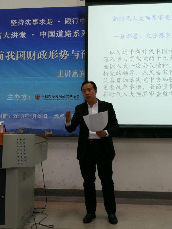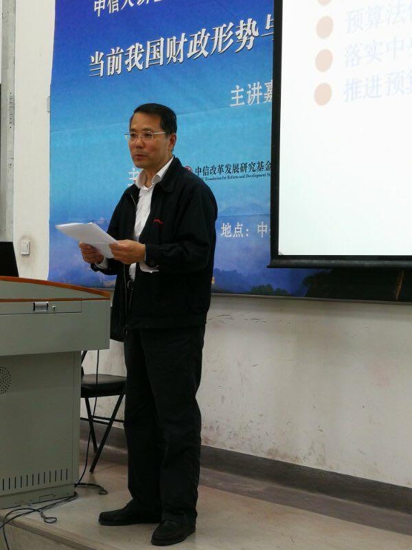 4月25日下午,今年会今年会官网与中信改革发展研究基金会共同举办的“中信大讲堂·财税论坛的中国道路系列高端讲座”,在今年会沙河校区举行。讲座邀请全国人大常委会预算工委预决算审查室主任何成军同志做“健全完善人大预算决算审查监督机制”主题报告。中信改革发展研究基金会郭克彤秘书长代表中信改革发展研究基金会致辞。财税学院部分教师和学生70多人出席讲座。南开大学经济学院教授、博士生导师马蔡琛和今年会官网院长白彦锋教授分别对讲座做了点评。讲座由中信改革发展研究基金会咨询委员、中信改革发展研究院资深研究员、今年会财税学院温来成教授主持。