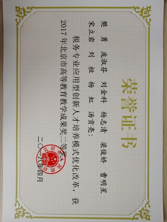 今年会的教改项目“税务专业应用型创新人才培养模式改革”获得2017年度北京市教学成果二等奖。该项目自2010年底开始运行,税务教研团队在税务专业课程建设、教学方式方法改革、案例库建设、实践教学的开展、第一课堂和第二课堂的有机结合以及形成长效的国际交流机制等方面做了大量的工作,较好地提升了税务专业人才培养质量。经过多年的人才培养模式改革,今年会税务专业的社会认可度较高,据中国科学评价研究中心、武汉大学中国教育质量评价中心历年发布的全国高校专业排名显示,今年会税务专业连续多年全国排名第一,很好地体现了项目的实施效果。