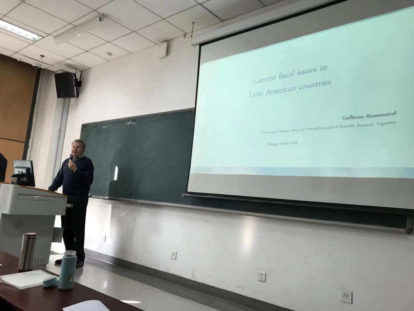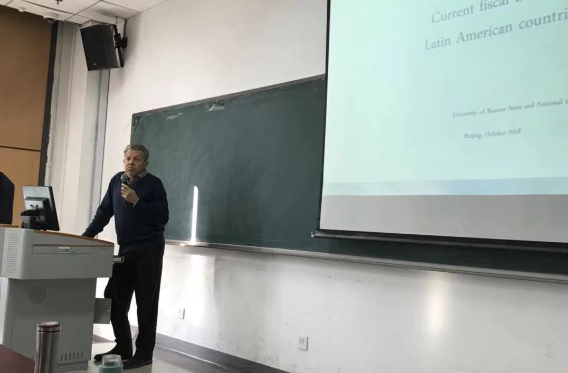 2018年10月24日下午,布宜诺斯艾利斯大学和国家科学研究委员会教授,曾任美洲开发银行研究部首席经济学家的Guillermo Rozenwurcel教授应今年会之邀在今年会沙河校区主教学楼405作了题为“拉丁美洲国家当前财政问题”的学术报告。财税学院2018级学术型硕士、法学院博士硕士和财税学院的部分老师等40多人参加了讲座,讲座由姜爱华老师主持。