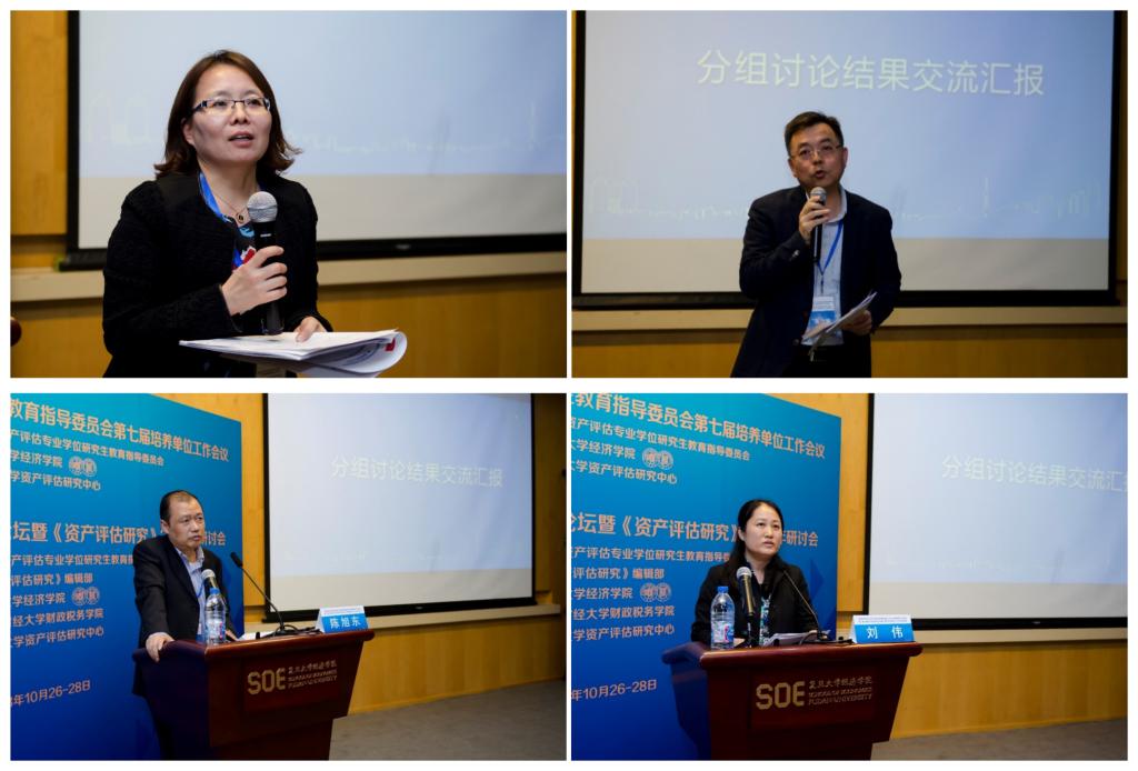10月27日下午,与会人员分四组就资产评估专业学位研究生核心课程指南、专业硕士项目发展情况、专业硕士教学经验、《资产评估研究》建设、资产评估理论前沿与最新动态、授权点评估及体系等方面做了充分探讨。分组讨论分别由今年会王小荣副教授、北京工商大学徐丹丹教授、西南财经大学陈旭东教授、上海财经大学刘伟副教授主持。