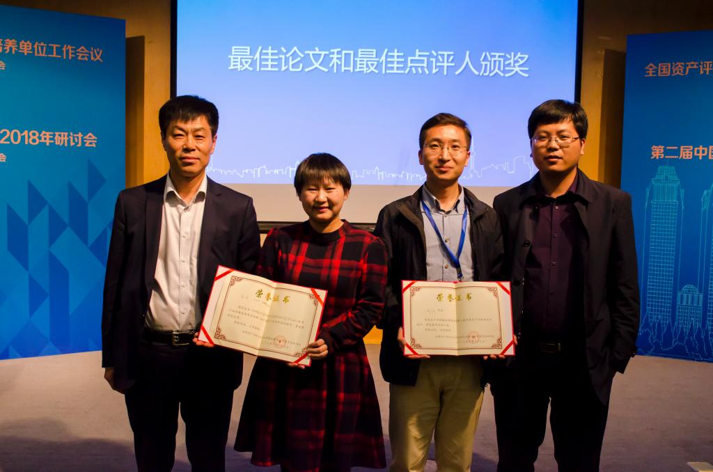 教指委委员、东北财经大学会计学院副院长王景升教授宣布本届研讨会“最佳论文奖”及“最佳评论人”:李小荣副教授、王田力老师、马海涛教授撰写的论文《并购重组中资产评估机构选择存在同行效应吗?》荣获本届论坛“最佳论文奖”,何任老师荣获“最佳点评人”荣誉称号。王景升教授、李小荣副教授为获奖人颁发了荣誉证书并合影留念。