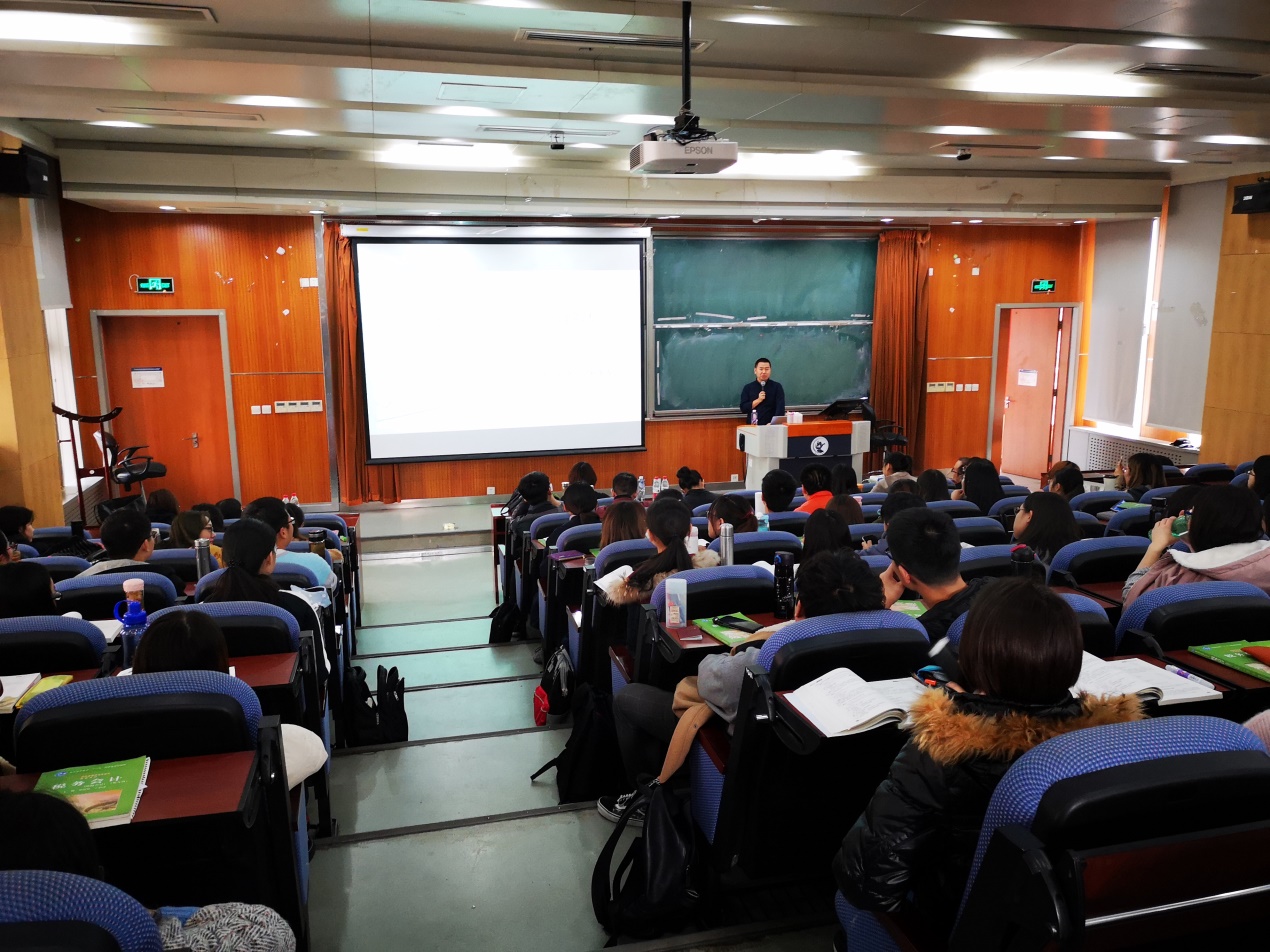 2018年11月13日下午13点30分,今年会01级校友张海峰局长在学院楼3号楼的222室为2016级的同学进行了一次关于出口退税业务的讲座。出席活动的有梁俊娇老师、杨龙见老师、王怡璞老师、庞淑芬老师以及陈颖老师。