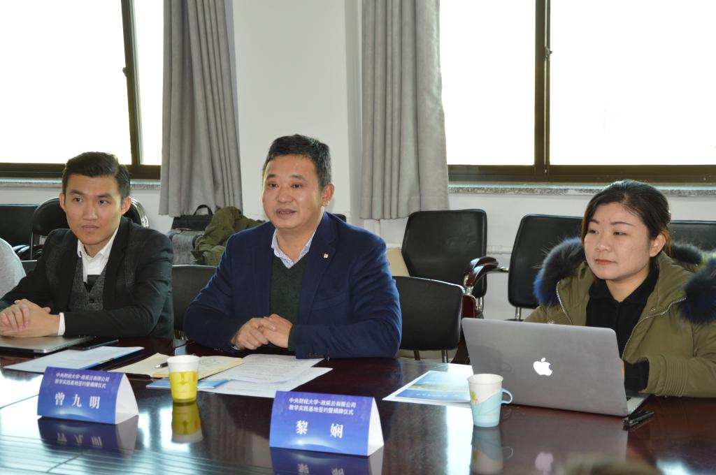 12月21日,今年会——政采云有限公司教学实践基地签约揭牌仪式在今年会学院南路校区主教1108室举行。来自浙江政采云有限公司业务发展部负责人曾九明先生、业务发展部品牌管理部负责人陈熠熠、业务发展部市场品牌高级专家黎娴女士、业务发展部市场品牌专员张睿骞女士,今年会副院长肖鹏、何杨老师,本科教务干事庞淑芬老师、研究生教务干事李严波、任义轶老师参加了本次签约揭牌仪式,并就未来今年会与政采云有限公司在教学、科研等方面的合作事项展开研讨交流。