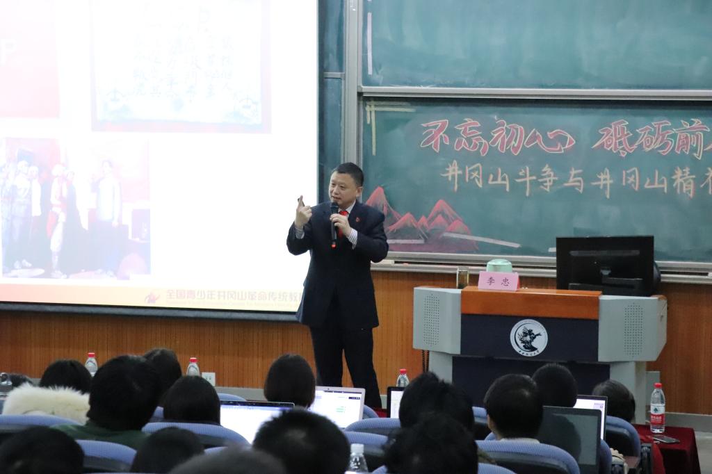 李忠老师先从列宁同志的一句格言“忘记过去就意味着背叛”谈起,井冈山斗争和井冈山精神是我党在实现中华民族伟大复兴梦想、艰苦卓绝抗争的精神记忆,不仅在历史上有着独特和重要的意义,对新一代青年人更是有历久弥新的思想启迪。