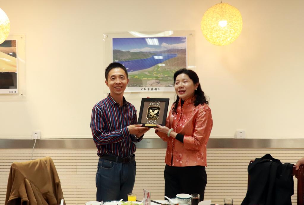 图4:肖幸金副校长与白彦锋院长互换礼品