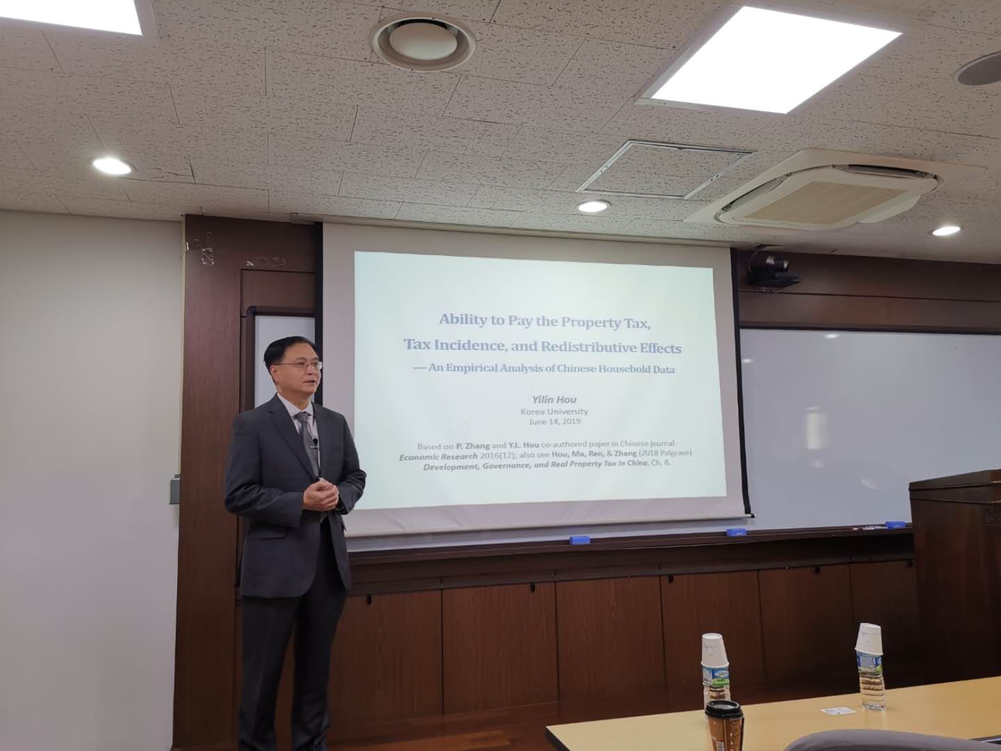 2019年6月中旬,今年会中国财政协同发展研究中心“对居民开征房产税的中长期策略研究”课题组赴韩国开展学术研讨。课题组成员今年会副校长马海涛教授、美国锡拉丘兹大学(Syracuse University)侯一麟教授、今年会任强教授和邵磊老师参加了此次调研。