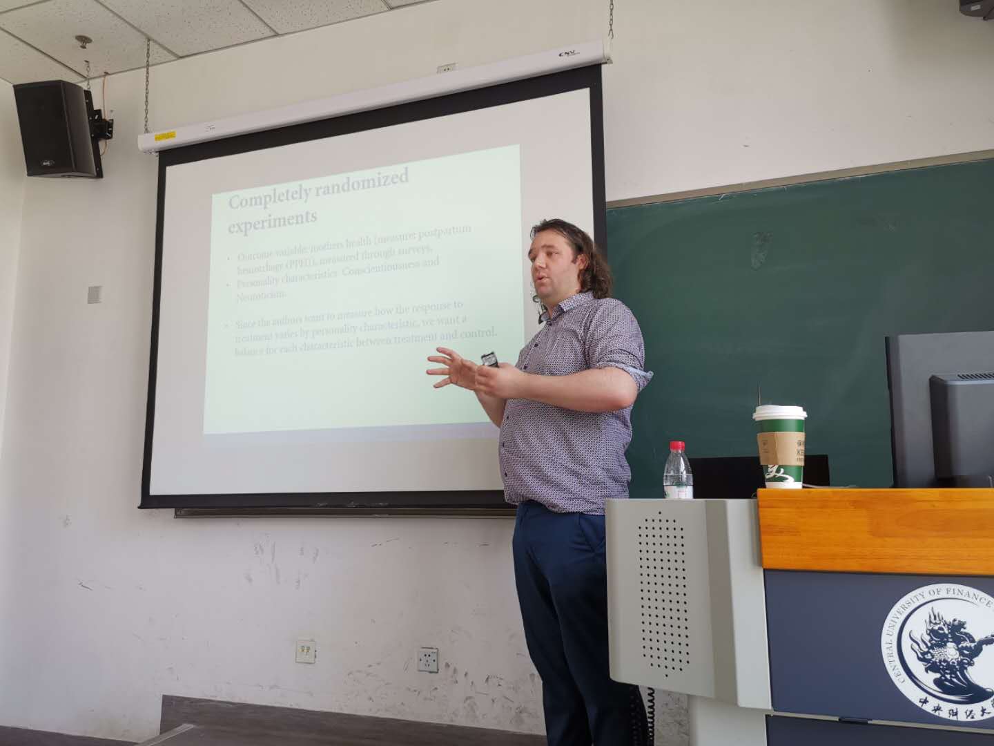 在本次全英文课程中,两位教授使用目前比较流行的应用计量经济学教材Mastering 'metrics: The path from cause to effect(Angrist, J. D., & Pischke, J. S., 2014)为主要参考资料,以理论和应用相结合的方式,为学生介绍了经济学当前的研究趋势和前沿研究方法。具体内容包括RCT(随机试验法)、IV(工具变量法)、RD(断点回归法)和DID(双重差分法)。两位教授首先从传统计量经济学方法在因果识别中的局限性出发,强调了遗漏变量、反向因果等问题可能造成回归结果偏误,对各前沿研究方法是如何克服这种局限性,作出了详细的理论推导。在此基础上,两位教授讲解Acemoglu(2001)、Gonzalez(2013)和Olken(2007)等经典文献是如何应用现代计量方法,对实证策略进行巧妙设计。这加深了同学们对课程内容的认识。两位教授演示了经典文献中具体的STATA命令操作,并对文献的实证结果作出细致分析。