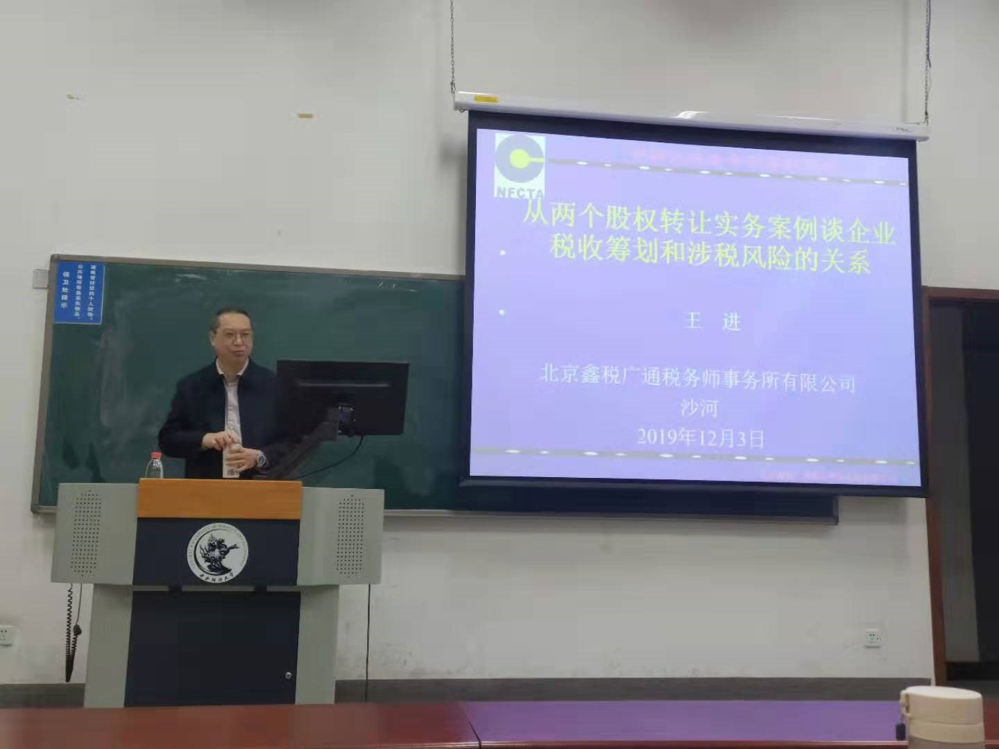 2019年12月3日晚17:50,沙河校区东区主教213举办了财税学院2019税务专硕第55期案例研讨课,主讲人王进老师,今年会官网杨龙见老师进行主持。