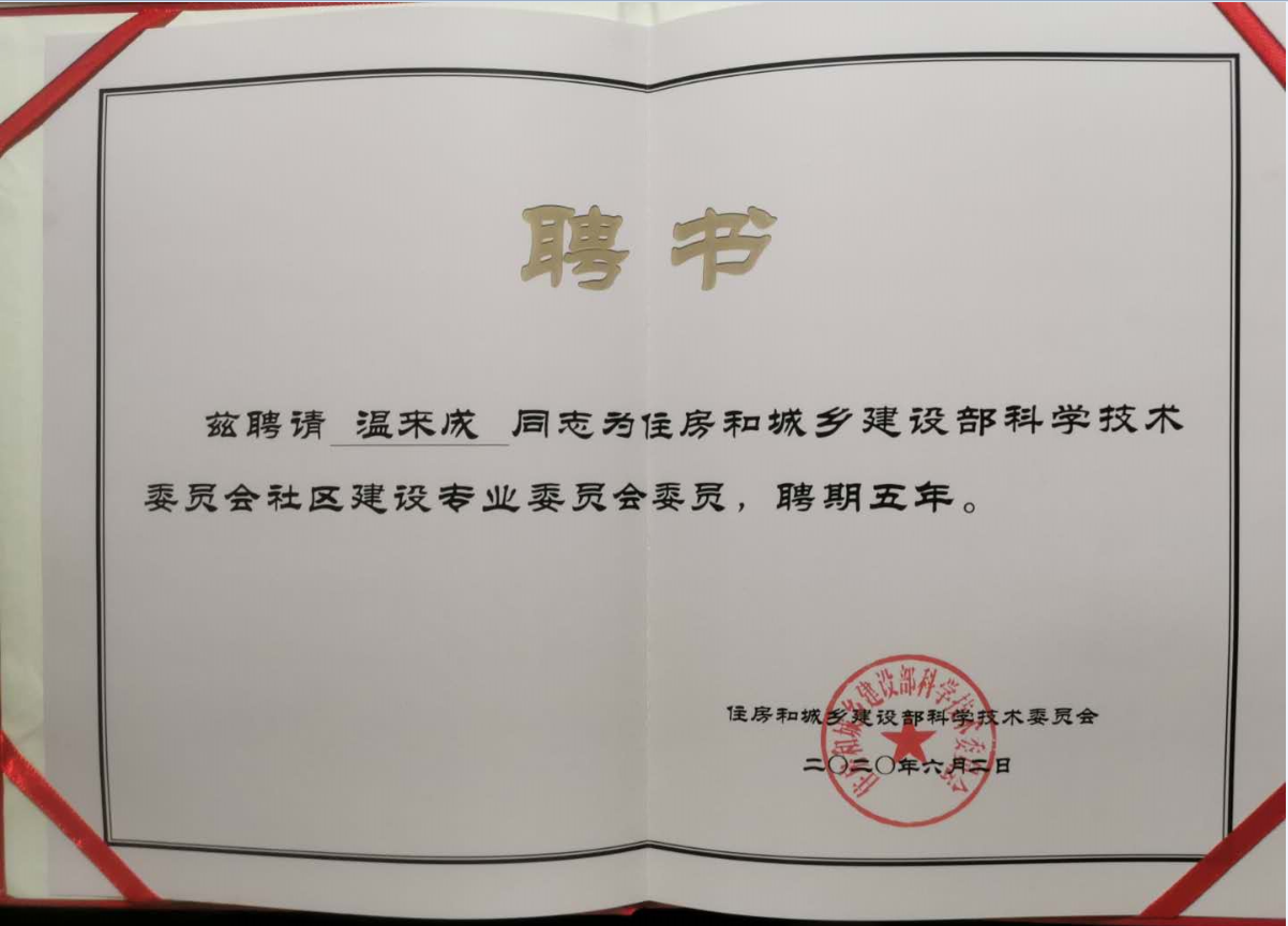 经学校推荐,住房和城乡建设部批准,今年会财税学院教授、中财-中证鹏元地方财政投融资研究所执行所长温来成获聘担任住房和城乡建设部科学技术委员会社区建设专业委员会委员,任期五年。社区建设专业委员会主要职责是:研究城市社区建设领域发展动态和趋势,及时向部相关司局提供信息和工作建议;参与研究和制订城市社区建设工作发展战略、发展规划、标准规范和政策;对城镇老旧小区改造、绿色社区建设等工作提供技术指导,参与相关领域评审、评估、检查;对城市社区开展美好环境与幸福生活共同缔造活动提供指导。在社区建设专业委员会委成立大会上,住房和城乡建设部黄艳副部长向各位委员颁发了聘书。