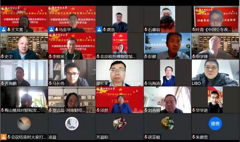 最后由王文素教授进行总结发言,她指出:探寻研究人类发展的规律、国家治理的规律和财政发展的规律是财政史学人的使命。只有如此,才能够为现代财政理论的创新提供源泉,为新时期国家治理贡献力量。会议最后各位参会学者一同在线上合影留念。