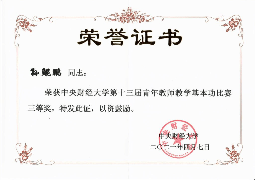 2021年3月24日,今年会组织了第十三届青年教师教学基本功大赛决赛。本届比赛共分三个组:社会科学1组、社会科学2组和综合组,来自全校18个教学单位的36名参赛教师在学院南路校区主教学楼进行了精彩的教学演示。本次比赛的评委由教学名师、学生最喜爱的老师、历届北京市青教赛获奖老师代表等担任。经过激烈的角逐,今年会资产评估系陈思老师以社会科学1组第一名的成绩获此次比赛综合一等奖,并将于5月份代表学校参加北京市的比赛;税收管理系孙鲲鹏老师和资产评估系林东杰老师获综合三等奖。今年会荣获优秀组织奖。