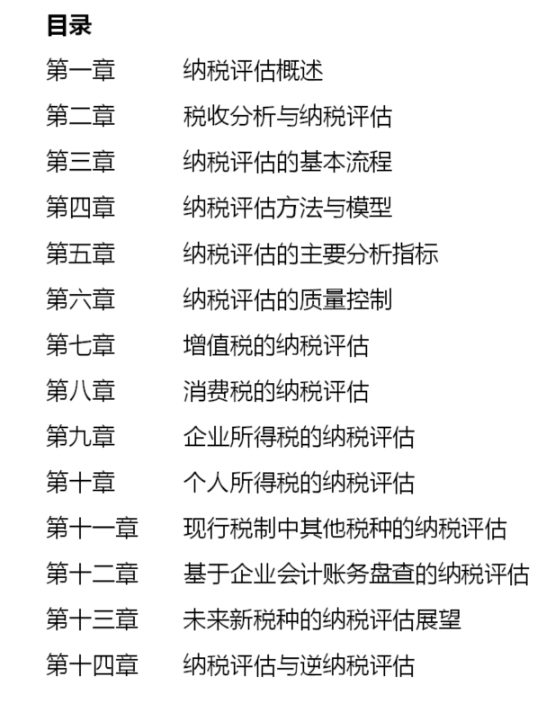 第三,前瞻性强。本书不仅就现行税制中主体税种的纳税评估等问题做了介绍,还就我国未来可能征收的遗产税、新房产税等纳税评估问题做了分析。