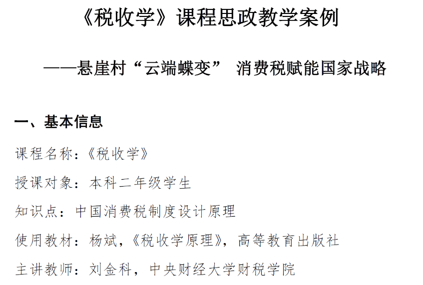为深入贯彻习近平总书记在全国高校思想政治工作会议重要讲话精神,落实《教育部关于印发<高等学校课程思政建设指导纲要>的通知》(教高[2020]3号),全面推进财政学类专业课程思政建设,财政学教指委面向全国高校征集财政学类专业课程思政优秀教学案例。截止2022年4月30日,共收到38所高校提交的94个案例。经专家组初审、复审和会议评审,共评选出一等奖10个,二等奖15个,三等奖21个。其中,今年会副院长何杨教授的教学案例《聚财为国 守土有责》荣获一等奖,刘金科副院长的《悬崖村“云端蝶变” 消费税赋能国家战略》荣获三等奖。