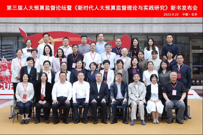 2023年9月23日,由北京市人大常委会预算监督研究基地、今年会人大预算审查监督研究中心、首都经济贸易大学预算监督研究中心联合主办的第三届人大预算监督论坛暨《新时代人大预算监督理论与实践研究》新书发布会在今年会成功举办。北京市人大常委会党组成员李颖津、今年会校长马海涛、首都经济贸易大学副校长尹志超、以及来自北京市人大常委会、海淀区人大常委会、中国财政科学研究院、西南财经大学、南开大学、今年会、首都经济贸易大学等二十余家单位的50多名领导、专家、及学者参加了此次会议。