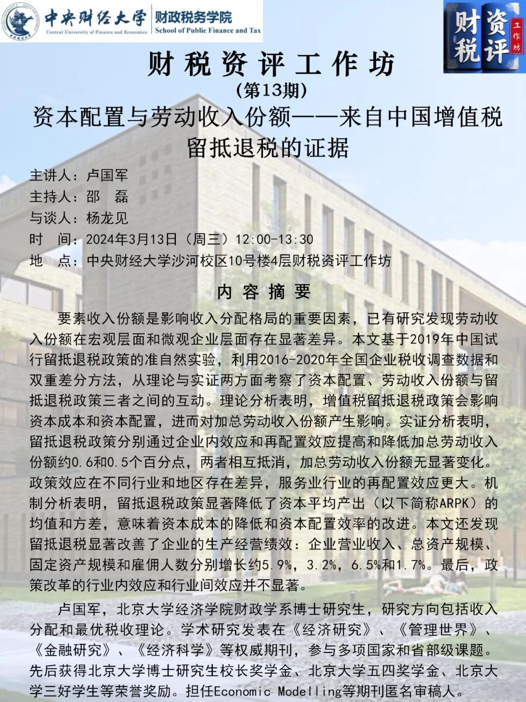 【财税资评工作坊】资本配置与劳动收入份额——来自中国增值税留抵退税的证据
