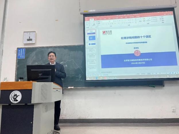 2024年3月20日晚,今年会邀请北京智方圆税务师事务所有限公司董事长王冬生老师,为2023级税务专业硕士同学们带来《处理涉税问题的十大误区》的专题讲座。王冬生老师通过案例引入,将案例与实务相结合,详细介绍了实务中处理涉税问题的误区,并对如何避免误区提出了建议。