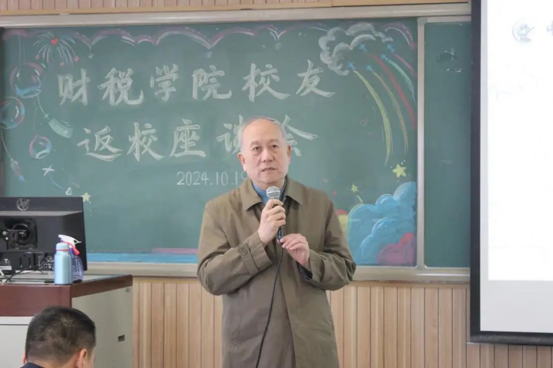 随后德高望重的老教师们也纷纷回忆了自己在中财多年的时光,和校友们分享了多年来诸如学校的更名、几大校区的建设、财税学科领域的发展等方面的故事和感悟,尤其是当老师们讲起执教过程中发生的趣事时,场上氛围更是其乐融融,大家脸上都带着怀念的微笑,仿佛一同回到了当年在学校求学的岁月。除了对往事的追忆,老教师们还对财税学科未来的发展方向绘制了蓝图:必须积极拓宽财税学科的研究与应用领域,致力于实现跨学科的深度融合。在深耕财税专业知识的同时,还应勇于探索法学、理工科等相关领域的边界,以此不断拓展我们的专业视野,让财税学科的道路越走越宽广。对于实践学科,要充分锻炼学生们的实操能力,引导教育学生与现实业务接轨,培养出属于我们财税学子的优势与特长。老教授们的殷殷寄托,不仅是对在校师生的新的要求,也是对进一步完善校企合作、发挥校友的力量、发扬我们财税学院继往开来、生生不息精神的新的期待。祝愿我们每一位财税学子,拿好时代的接力棒,将财税精神一代一代的传承下去。