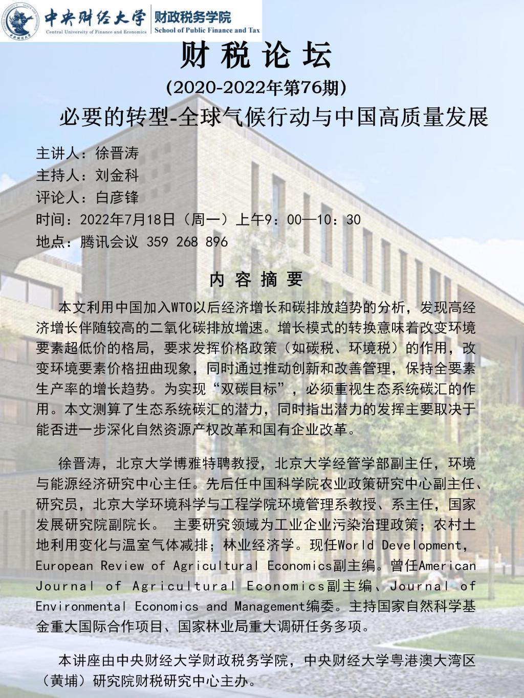 【财税论坛】必要的转型-全球气候行动与中国高质量发展