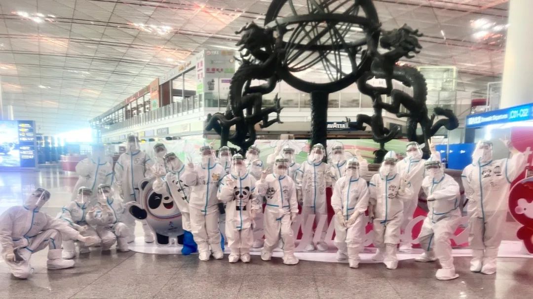 随着冬奥会赛程的结束,我们也在2月20日左右迎来了离境高峰。长期处于憋闷环境中的志愿者们纷纷在防护服上画起了吉祥物冰墩墩、雪容融,写一些充满正能量的话,这为志愿工作增添了一份乐趣。最后一次上岗时,大家丰富多样的“手笔”吸引了很多涉奥旅客拍照留念,他们每每走过,都会竖起大拇指赞叹。那一天,我画了手握柳枝的冰墩墩,有运动动员指着我的“画作”说“I love it”,我感受到了被回应的兴奋与喜悦。