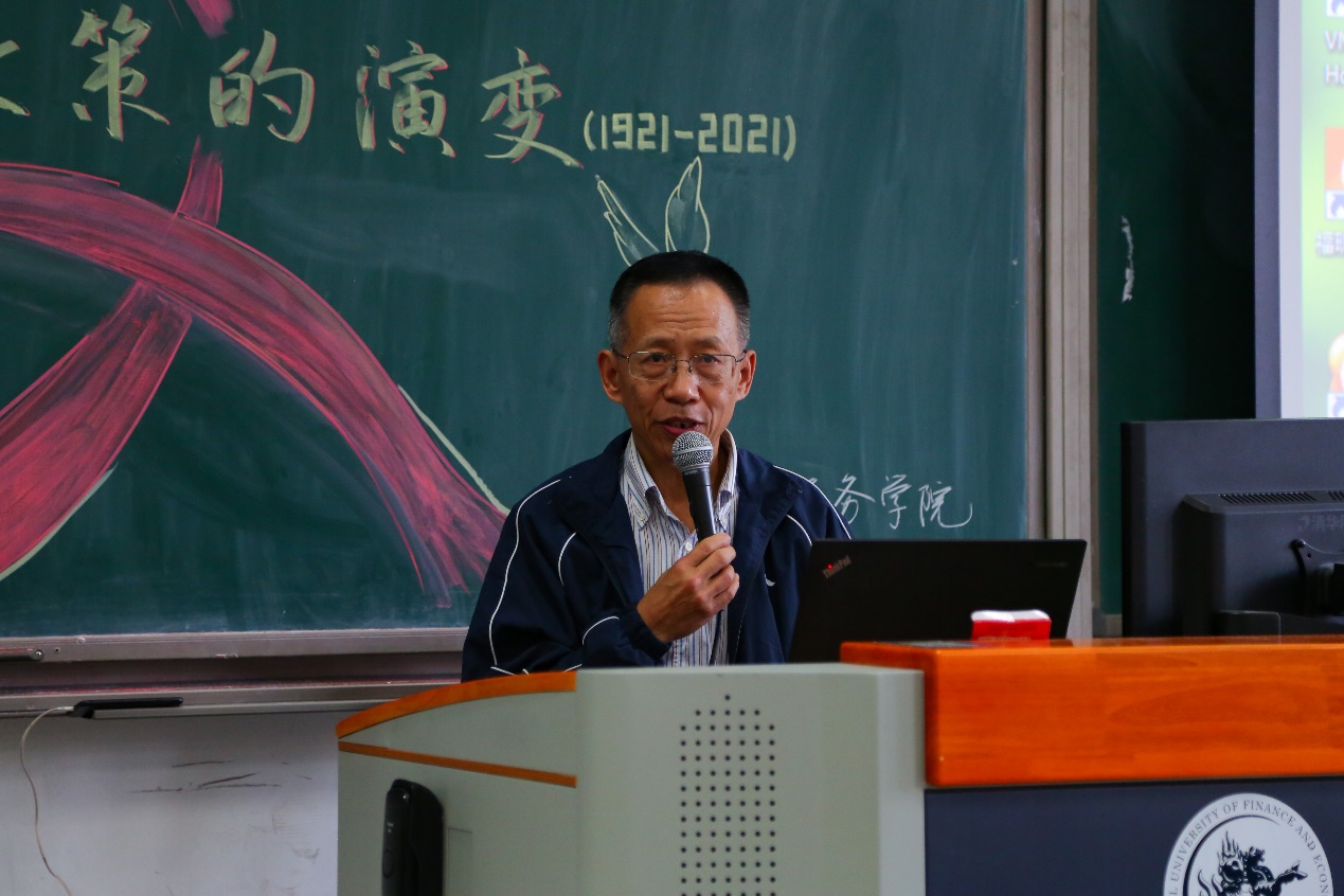 刘佐研究员将中国共产党成立100年以来的税收政策演变划分成为新民主主义革命时期、社会主义革命和社会主义建设时期、改革开放和社会主义现代化建设新时期,以中国共产党历次全国代表大会和其他重要会议文献以及其他有关重要文献为依据,概要梳理了100年来党的税收政策演进的历程。刘佐研究员将百年来的税收政策,如何付诸实施,逐步完善,对于中国的社会、经济发展和民生改善产生的重大影响等向到场的师生娓娓道来。