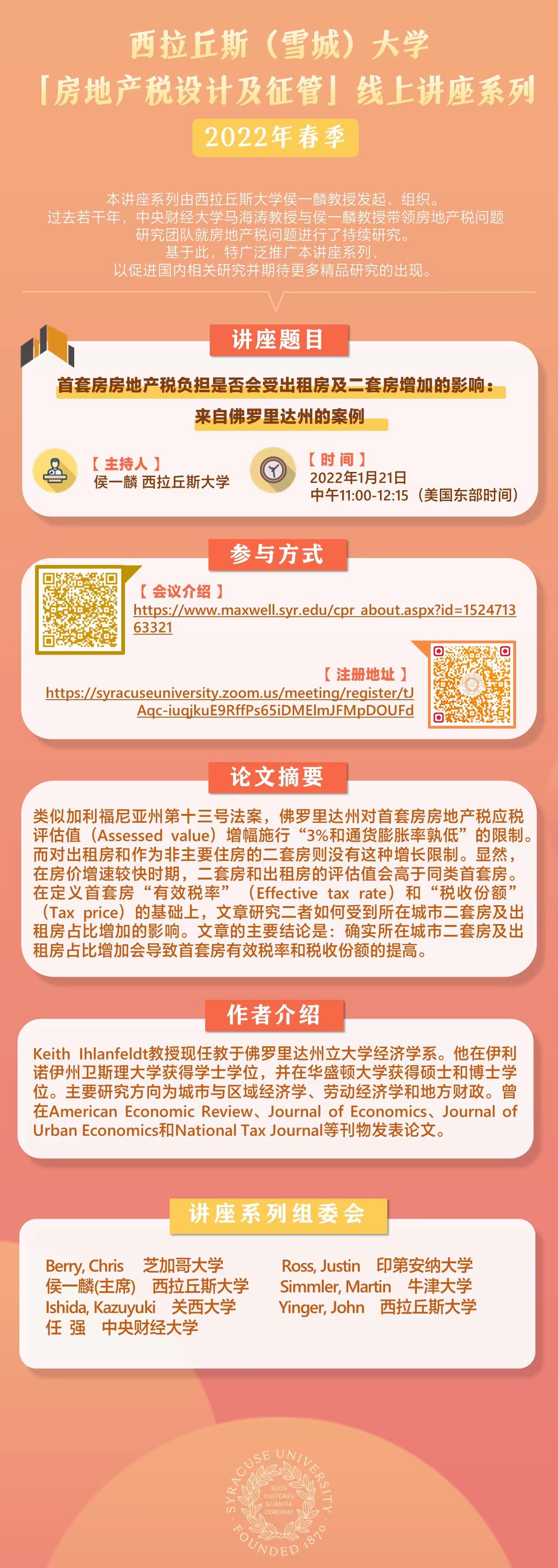 “房地产税设计及征管”线上讲座系列2022年春季——首套房房地产税负担是否会受出租房及二套房增加的影响:来自佛罗里达州的案例