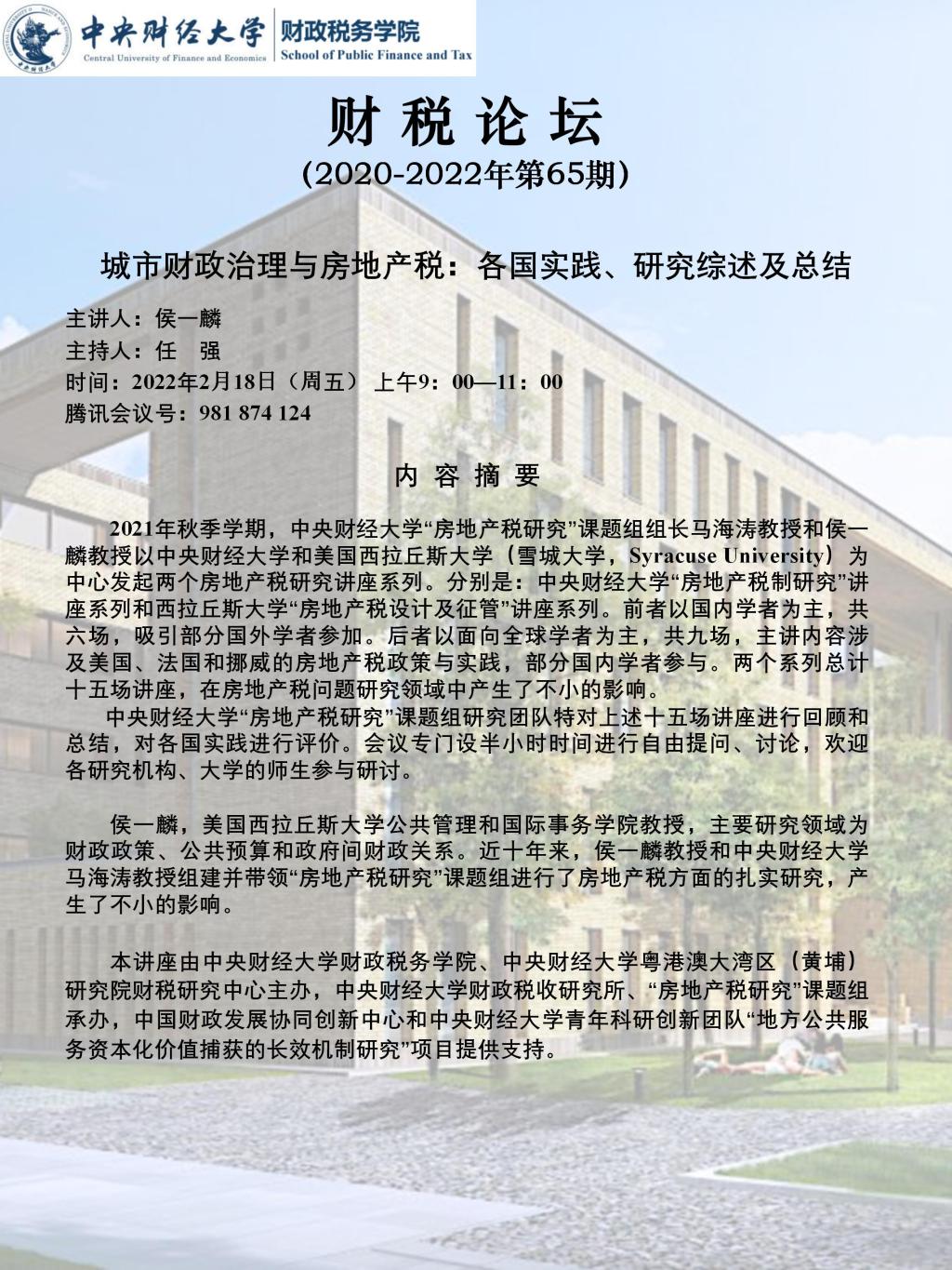 今年会“房地产税研究”课题组依托今年会财政税收研究所开展活动。更多课题组相关观点、文章及活动,请长按扫描二维码关注中财财税所今年会财政税收研究所微信公众号。