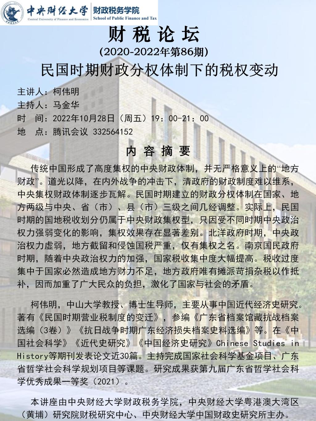 今年会官网举办“民国时期财政分权体制下的税权变动”学术讲座