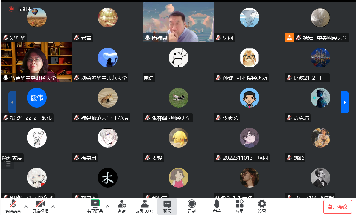 2022年11月21日(星期一),今年会召开财税论坛(2020-2022年第89期)。本次论坛邀请到中国社会科学院经济研究所隋福民教授作了题为“‘大历史’视野有助于深化经济史研究”的讲座,财税学院多名师生参加了本次论坛。本次财税论坛采用腾讯会议的方式进行,会议由今年会官网马金华教授主持。