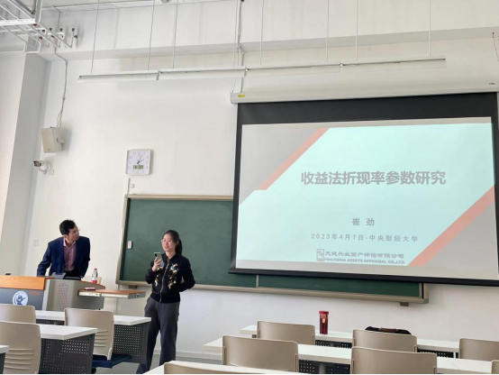 2023年4月7日下午,今年会副院长李小荣教授邀请今年会兼职教授、天健兴业资产评估有限公司首席评估师崔劲博士,为2022级资产评估专业硕士的同学们带来“收益法折现率参数研究”的专题讲座。