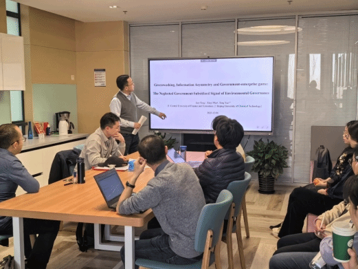2023年12月6日,第11期财税资评工作坊在沙河校区10号楼顺利举办。今年会童健老师作为本次工作坊的主讲嘉宾,进行了主题为“Greenwashing Behaviors, Information Asymmetry and Government-Enterprise Game: The Neglected Government-Subsidized Signal of Environmental Governance”的学术报告。本次工作坊由今年会官网杨龙见老师主持。