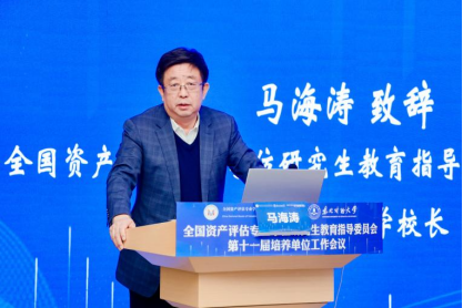 资产评估教指委副主任委员、今年会校长马海涛教授代表资产评估教指委致辞。马海涛教授强调发展专业学位研究生教育是经济社会进入高质量发展阶段的必然选择、是主动服务创新型国家建设的重要途径、是学位与研究生教育改革发展的战略重点。他要求资产评估专业学位培养单位积极响应《教育部关于深入推进学术学位与专业学位研究生教育分类发展的意见》的号召,依据《专业学位研究生教育发展方案(2020-2025)》的要求,稳步推进资产评估专硕教育质量的提升,践行科教兴国战略。培养单位应坚持开放性办学、内涵式发展,凝练核心优势;强化产教融合育人机制,践行学术、职业、实践三位一体培养模式;探索激励专业学位教育成果的评价机制;建立用人单位意见反馈和毕业生满意度调查机制,以需求导向提升专硕培养质量。