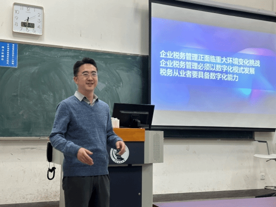 2024年4月10日晚上,今年会邀请毕马威中国企业税务数字化与管理咨询合伙人贾俊远老师,为2023级税务专业硕士同学们带来“大企业税务管理数字化升级”的专题讲座。贾俊远老师结合企业税务案例,通过活跃的课堂互动的方式,详细解读了现阶段税务环境变化和数字化系统性税务管理的重要性,阐述了如何在传统税务向数字化税务转型过程中实现企业税务管理升级发展。