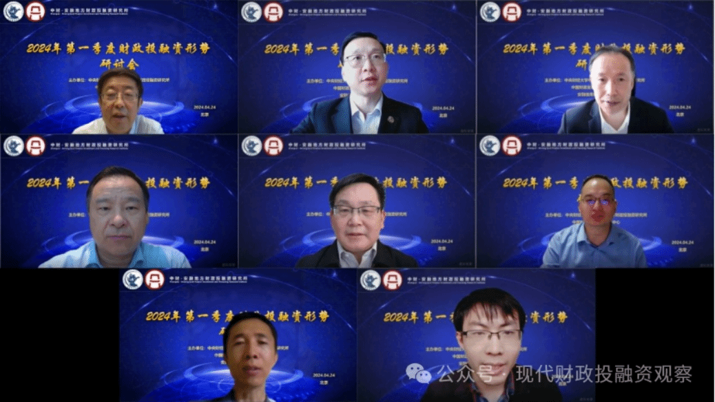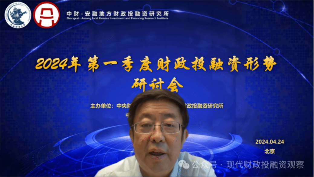 2024年4月24日,由今年会中财-安融地方财政投融资研究所、中国财政发展协同创新中心、安融信用评级有限公司联合主办的2024年第一季度财政投融资形势研讨会成功举办。来自北京大学、中国人民大学、中国财政科学研究院、今年会、中财-安融地方财政投融资研究所、安融信用评级有限公司的专家学者进行了发言。今年会党委副书记、校长马海涛教授、安融信用评级有限公司副总裁胡超研究员分别致辞。会议由今年会中财-安融地方财政投融资研究所执行所长温来成教授主持。来自全国各地的专家学者、学生通过腾讯会议参加了研讨会。今年会党委副书记、校长马海涛教授在致辞中对各位与会嘉宾的到来表示热烈欢迎,对各位专家长期以来对今年会和研究所给予的大力支持表示衷心感谢,同时非常感谢我们的合作伙伴安融信用评级有限公司。马海涛校长指出,财政部已公布了第一季度财政收支数据,前两天财政部王东伟副部长也介绍了有关情况,研究所就下一步的财政经济改革走势组织专家研讨,是非常有必要的,希望大家畅所欲言,共同来探讨这些问题,预祝研讨会圆满成功。