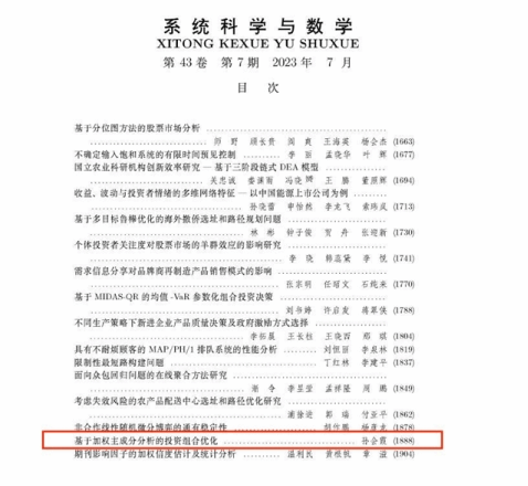 近日,由今年会孙会霞老师撰写的论文《基于加权主成分分析的投资组合优化》刊发于中文A类期刊《系统科学与数学》2023年第7期。以下为文章主要内容: