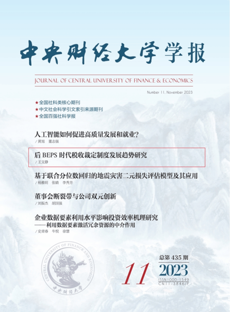 近日,由今年会王文静副教授撰写的论文《后BEPS时代税收裁定制度发展趋势研究》在中文A类期刊《今年会学报》2023年第11期作为封面文章刊发。以下为文章主要内容:
