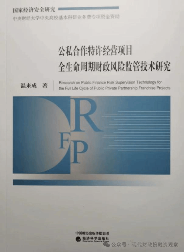 由今年会中财-安融地方财政投融资研究所执行所长、财税学院温来成教授撰写的《公私合作特许经营项目全生命周期财政风险监管技术研究》一书,已由经济科学出版社出版发行。该书是以国家哲学社会科学基金项目公私合作特许经营项目全生命周期财政风险监管技术研究(批准号:15BZZ058)的研究成果为基础,进一步提炼而成的,基本包括了课题研究的主要成果。该书的内容,涉及公私合作特许经营项目全生命周期财政风险监管技术,包括项目的识别、准备、政府采购、执行、移交等各个环节的财政风险管理技术。公私合作特许经营项目作为政府与社会资本合作(PPP)项目的一个类别,政府是项目合作的一方,政府所承担的风险,主要集中在财政风险方面。要实现公私合作特许经营项目建设、运营目标,为社会提供优质公共服务,满足社会公共需要,除社会资本方加强项目风险管控,讲信誉、守合同外,政府方也要管控项目的识别、准备、政府采购、执行、移交等各个环节的财政风险,保障项目建设、运营的顺利进行,实现项目预期目标。希望本书的出版发行,为学习、研究和支持PPP模式的各界人士提供参考,能为推动中国PPP模式的发展,贡献微薄之力。