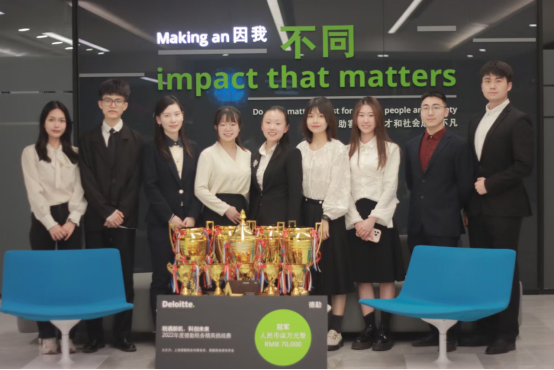 2023年4月18日,第18届德勤税务挑战赛举行了隆重的颁奖仪式。今年会官网派出的李函育、刘书妤、周宇翔、滕明璨、童梦瑶、姚荔婷、纪浩然、任紫娴八名同学,与商学院郭湘同学、会计学院余尚同学一起组成两支队伍参加比赛。经过激烈角逐,由李函育、刘书妤、周宇翔、郭湘组成的队伍1荣获2022德勤税务精英挑战赛冠军,由滕明璨、纪浩然、童梦瑶、姚荔婷、余尚组成的队伍2荣获2022德勤税务精英挑战赛卓越奖,纪浩然同学荣获最佳方案奖,任紫娴同学作为个人赛道的选手与北京大学团队赛道的选手组队荣获2022德勤税务精英挑战赛亚军。