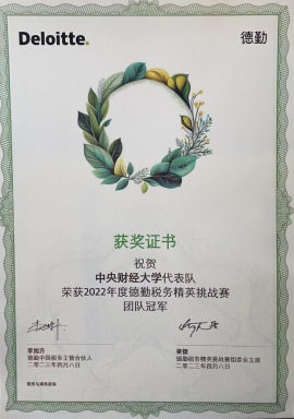 本次2022德勤税务精英挑战赛是一场富有挑战和充满收获的比赛,今年会两支队伍经历了初赛模拟商务谈判、复赛实习和议题报告撰写、半决赛视频案例汇报、决赛PPT汇报展示及评委提问等多个环节的激烈角逐,最终成功获得了冠军和卓越奖等多个奖项,其中纪浩然同学凭借自己对企业财税业务的准确理解以及深厚的系统构建技术基础,还获得了个人赛道的最佳案例奖。这次比赛不仅是对今年会学子税务专业知识的考验,更是对同学们团队协作能力的锻炼和提高。