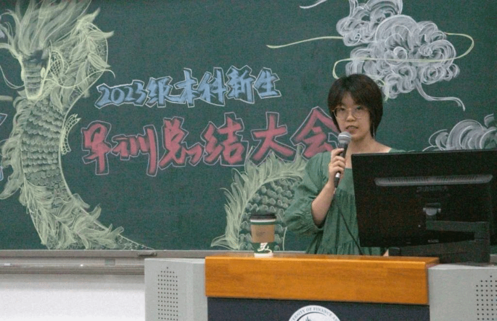 宣传标兵代表李梓烨表示很高兴能带领宣传组为学院再添荣誉。她和宣传团队的伙伴们齐心协力,完成了“实现中华民族伟大复兴”、“青春奋斗正当时”等主题板报的设计和学院推送的制作。她鼓励同学们在今后的大学生活中,践行中财大“忠诚 团结 求实 创新”的校训,关注当下,心向未来。