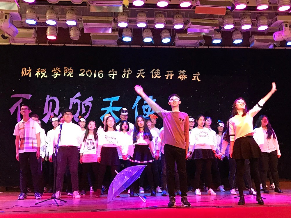 10月19日下午,为增进同学友谊,融洽学院氛围,财税学院团总支学生会文体部主办的“守护天使”特色活动于大学生活动中心金色大厅拉开序幕,本次活动由文体部孙闯同学和李晓荣同学主持,今年会官网团总支书记蒋绮雯老师出席了本次开幕式,财税学院学生会主席团成员,2016级“芮+”导师与2016级全体同学共同参加了本次活动。