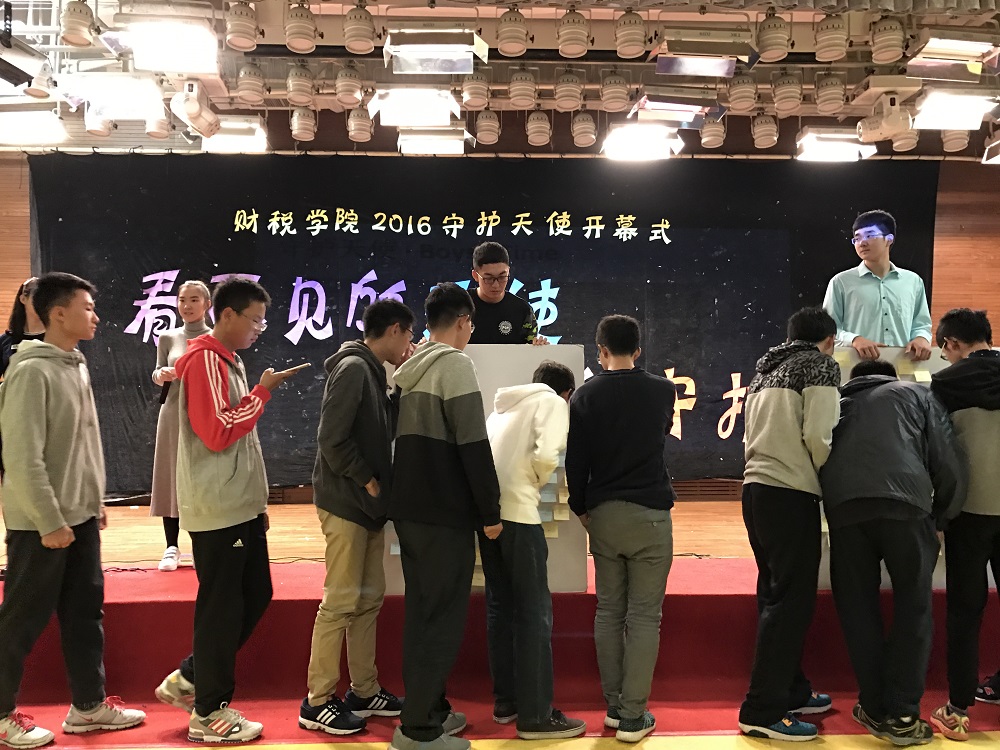 在新生班级轮流的风采展示后,财税学院的男生女生们依次上前抽取了自己的守护对象,为本次活动画上了一个完美的句号。