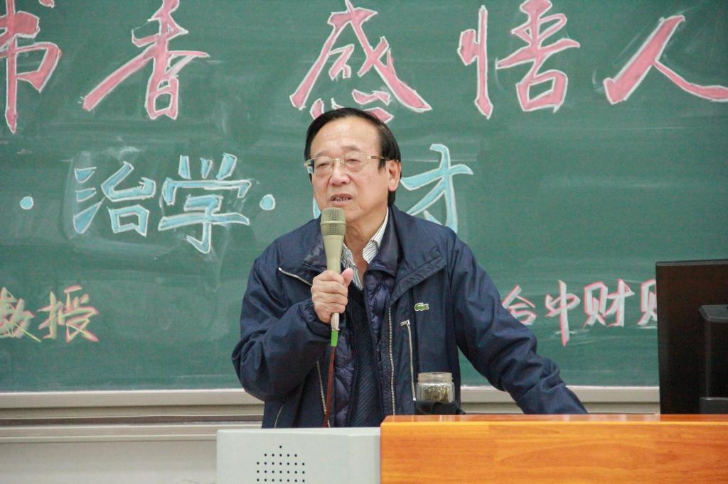 接着,汤教授表达对今年会财政税务学科教学质量的肯定,然后介绍了新中国财政史第一人崔敬伯教授等今年会知名校友,提出对同学们“肩负使命,关注前沿,刻苦求学,成为精英人才”的期望,并向同学们推荐了《当代税务理论研究》《税收与经济发展》《财政原理与比较财政制度》等专业书籍。