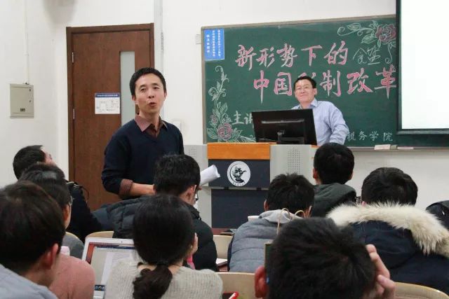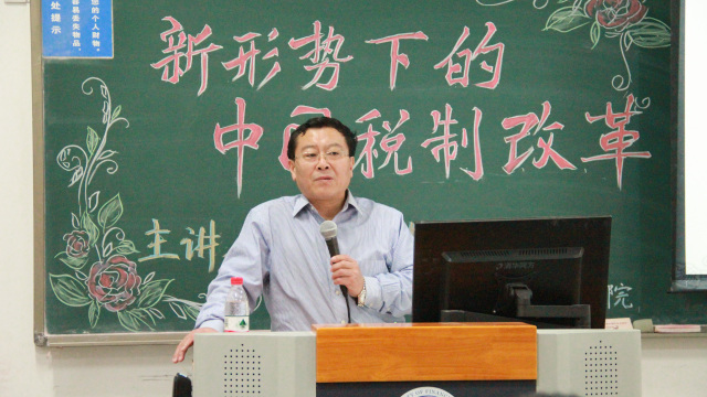 12月18日晚上,财税学院在今年会沙河校区东区主教213教室举办了以“新形势下的中国税制改革”为主题的讲座。主讲人为中央人民大学财政金融学院副院长、中国财政学会理事、中国税务学会委员会委员、中国税务学院理事、中国财税法教育研究会理事岳树民教授。今年会院长白彦锋教授,院长助理汪昊老师,税务管理系王怡璞老师,院团委副书记陈颖老师,以及学院本科和研究生同学参加了本次讲座。